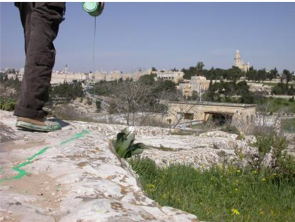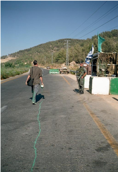 In de gefilmde wandeling The Green Line van Francis Alÿs wordt een oud politiek conflict opgerakeld. Alÿs loopt kilometers door Jeruzalem, met een lekkend potje groene verf in de hand, een spoor achterlatend dat precies de grens aanduidt die ooit erkend werd bij de wapenstilstand van 1948, maar inmiddels met voeten wordt getreden. Een poëtische handeling in een sterk beladen politieke situatie. De grenslijn die destijds op een kaart werd getekend door Moshe Dayan staat bekend als 'de groene lijn'.