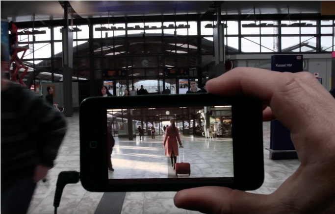 Zodra je de iPod start, laat je je leiden door de stem die vooral het gefilmde beeld volgt waardoor er een gelaagdheid ontstaat in waarneming, ervaring en tijd met daarbij de daadwerkelijke, identieke fysieke ruimte om je heen. Doordat je tijdens de wandeling de bewegende beelden met je iPod volgt - en je probeert het beeld te kaderen alsof jij de cameraman bent - ontstaat een vreemde verwarring van fictie en werkelijkheid. In deze verwarring of gelaagdheid smelten in deze Alter Bahnhof-videowandeling het verleden en heden samen.