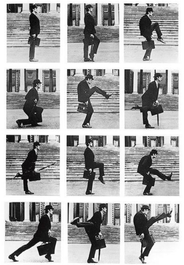 Om af te sluiten met wat luchtigs: het meest (te) gekke en bekendste wandelloopje is, denk ik, dat uit het Ministerie van rare loopjes van Monty Python's Flying Circus.
