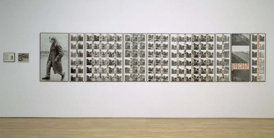 ‘The Walking Man Diary’, Ian Breakwell, 1975 (en een detail), hier tentoongesteld in De La Warr Pavilion, Bexhill on Sea, 2013.